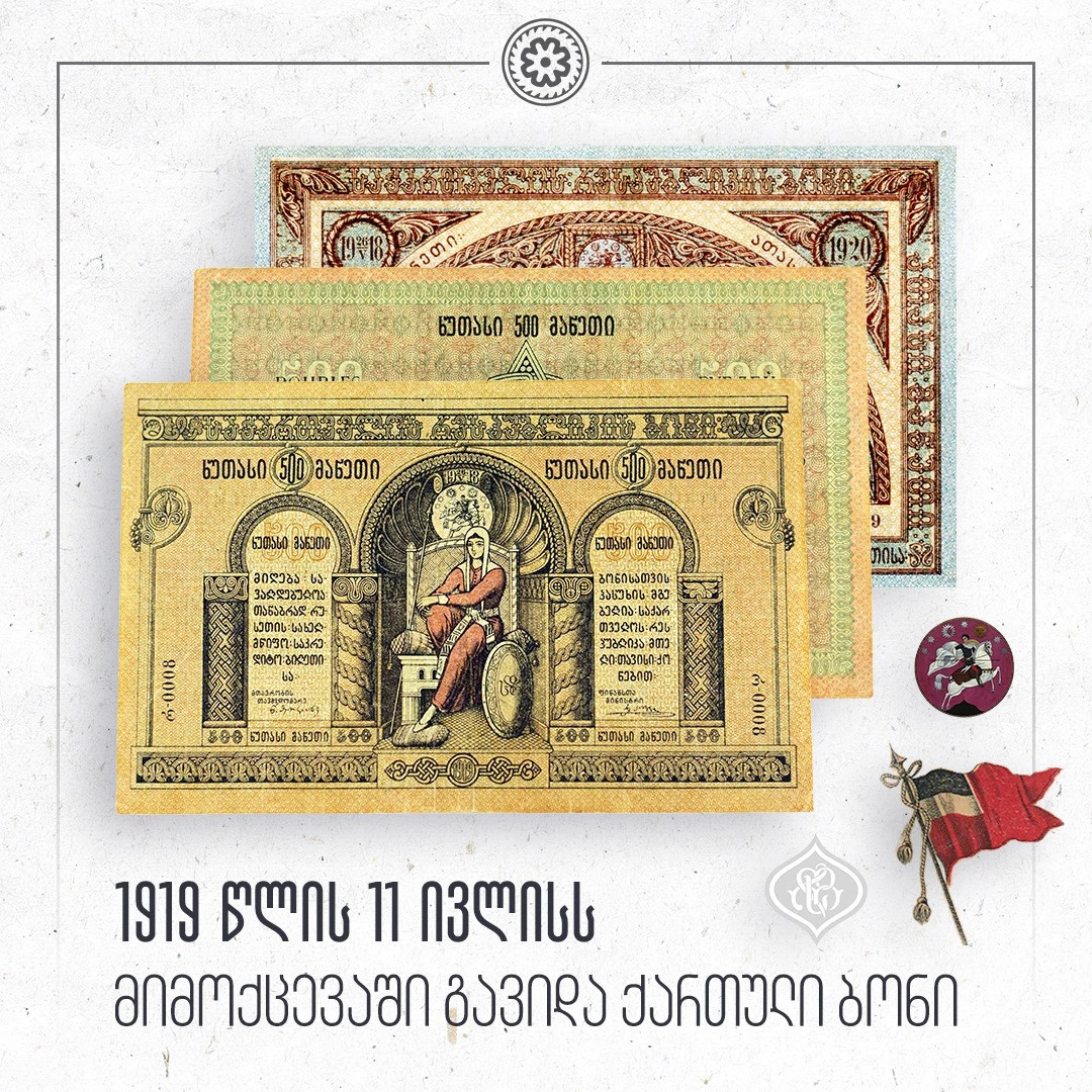 105 წლის წინ, 1919 წლის 11 ივლისს, მიმოქცევაში გავიდა პირველი ეროვნული ფულის ერთეული - ქართული ბონი,რომელიც სუვერენული სახელმწიფოს ერთ-ერთი უმნიშვნელოვანესი ატრიბუტი იყო, - ამის შესახებ ინფორმაციას საქართველოს ეროვნული ბანკი ავრცელებს.